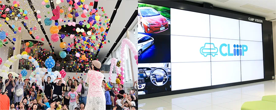 1Fのイベントスペースでは、地域の人たちが楽しめるCLiPオリジナルのイベントを実施。イベント等で利用可能な県内最大級の大型屋内モニターの設置。